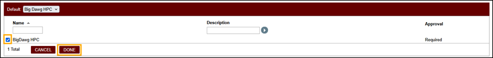 9. A short form will appear. Click the checkbox next to “BigDawg HPC.” Then, click Done.