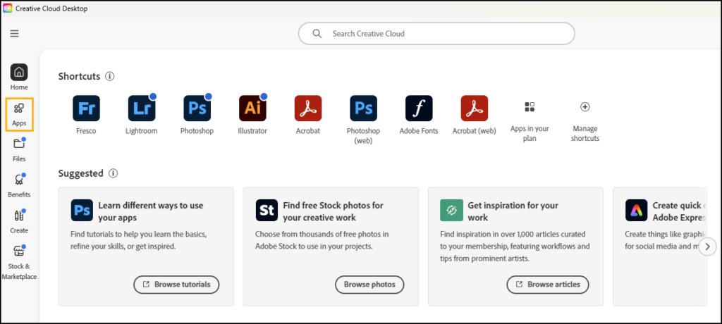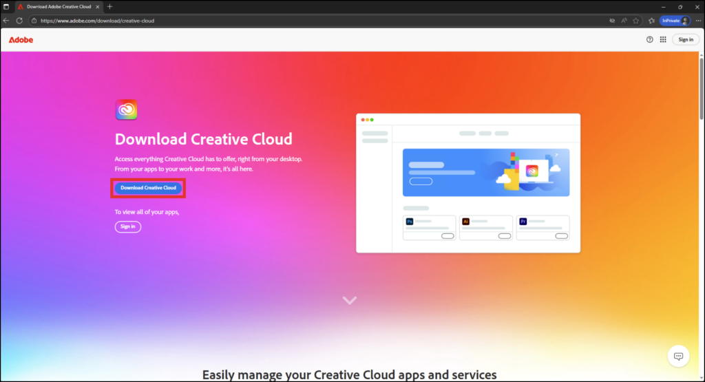 1. In your browser, go to the Adobe Creative Cloud download page.