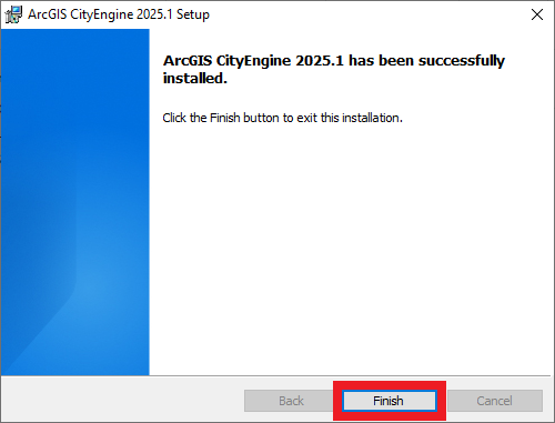 ![]() | ArcGIS CityEngine has been successfully installed: * Click Finish. |