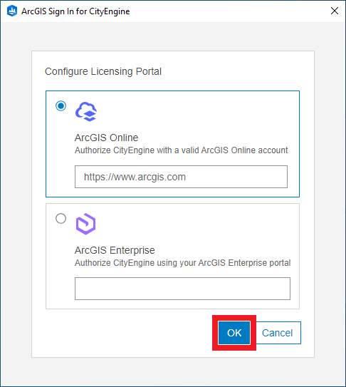 ![]() | Sign in to ArcGIS CityEngine: * Sign in with your assigned ArcGIS username and password. |