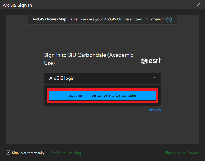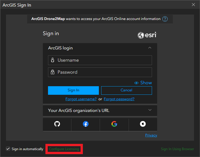 Sign in to ArcGIS Drone2Map